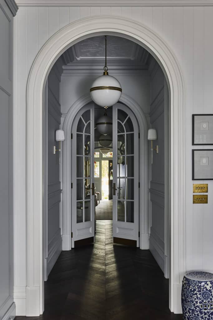 Studio Trio collaborated closely with Intrim to develop a custom skirting and architrave profile suited to the homeโs period detailing, including bespoke solutions for the curved arches. SB03 skirting blocks were used where skirting meets architraves at door bases, while LB100 lining boards feature throughout the interiors. Traditional wainscoting was introduced using Intrimโs IN31 inlay mould paired with the CR50 chair rail, reinforcing the homeโs classic proportions and craftsmanship.