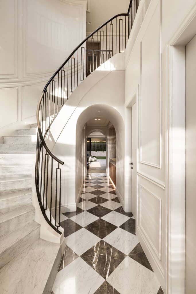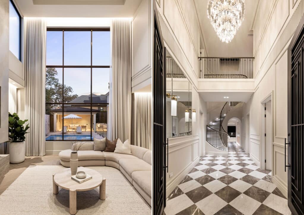 This architectural masterpiece in Strathfield showcases modern luxury, featuring Intrim SK557 skirting, CR46 chair rail, and IN25 inlay moulds for timeless wainscoting and refined detailing.